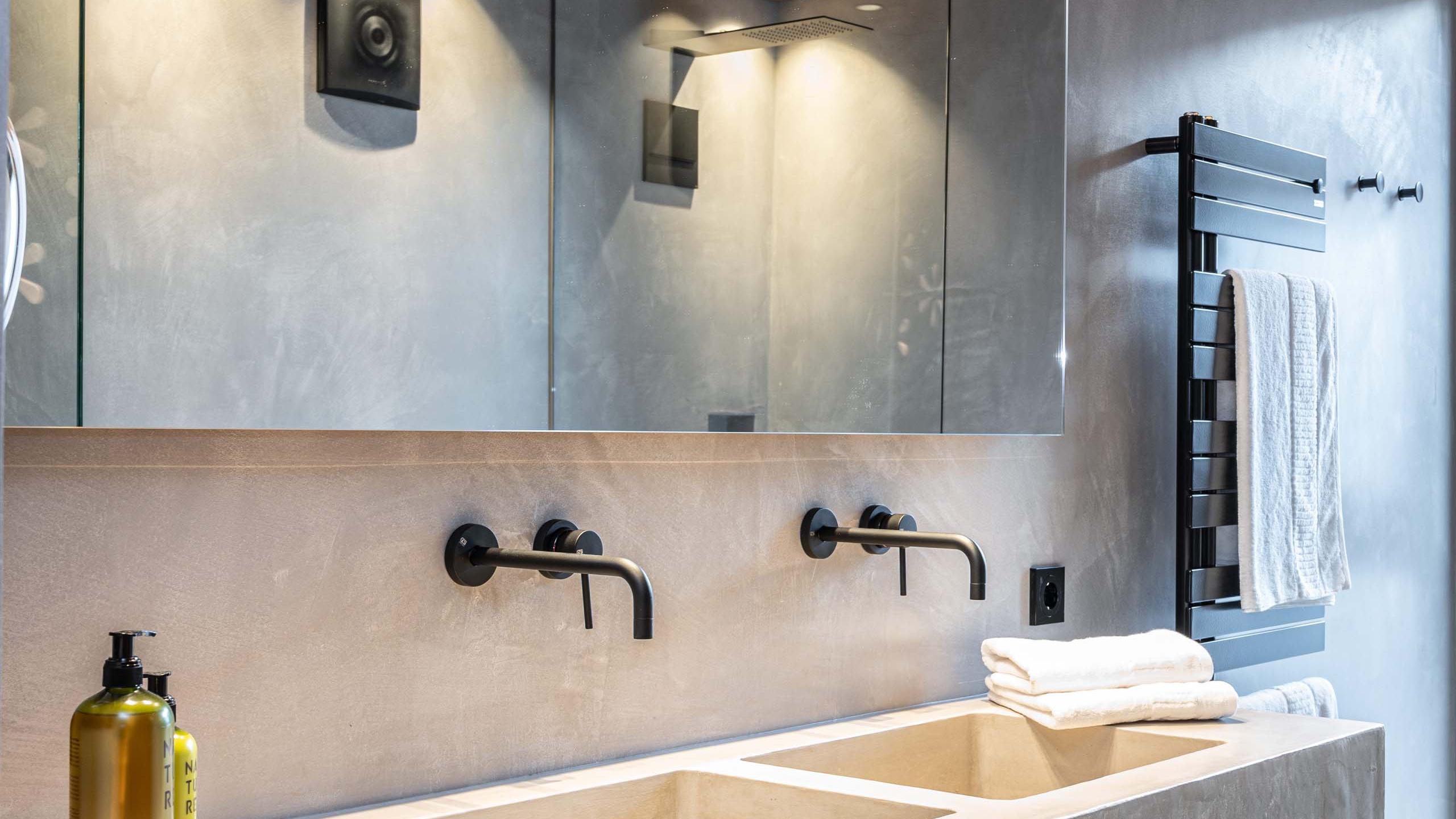 - Ein Badezimmer, direkt vom Schlafzimmer aus erreichbar, mit WC, Bidet, Waschtisch, Dusche, Föhn, Kosmetikspiegel, flauschigen Handtüchern und Radio