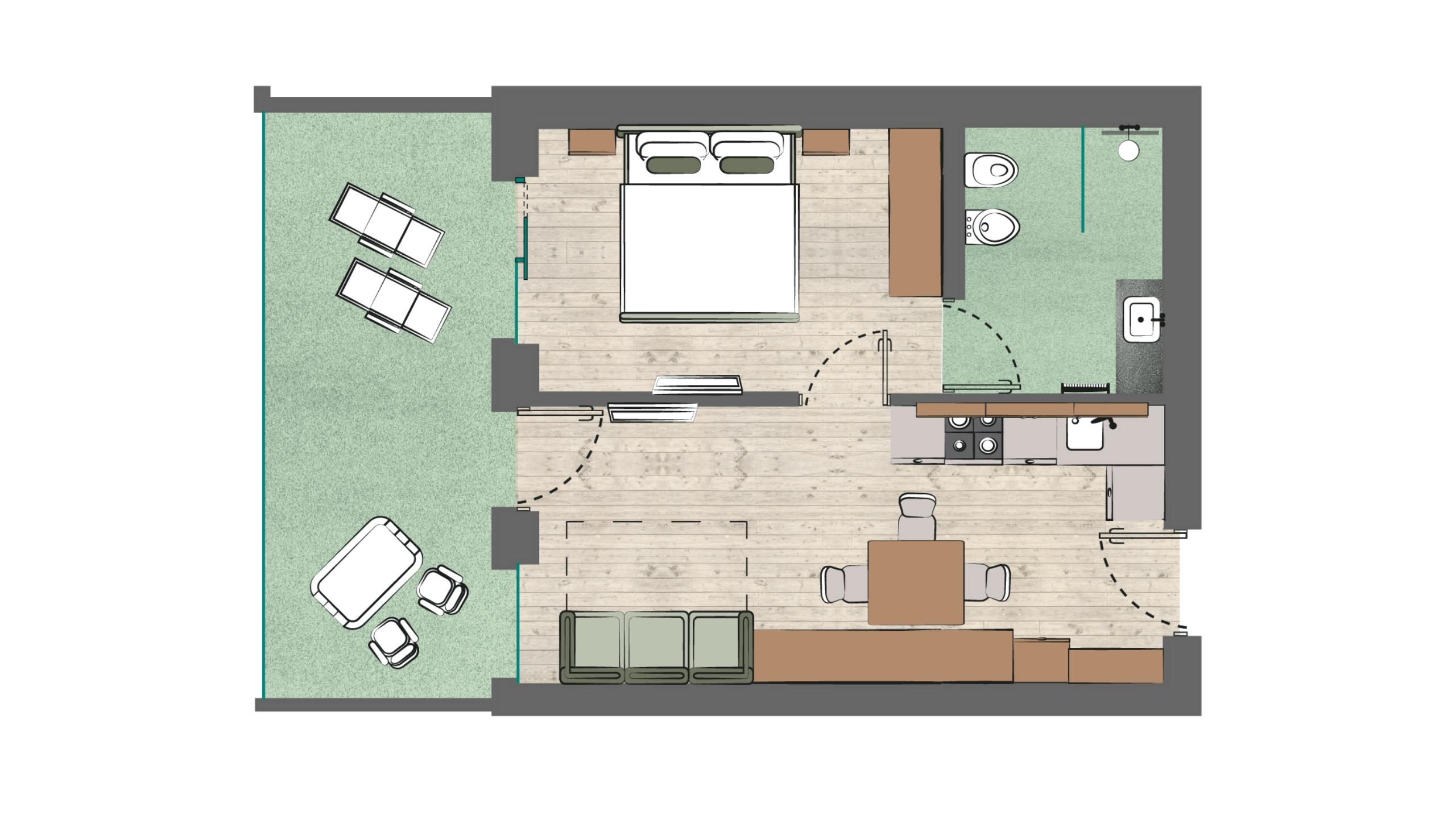 - Ogni appartamento è dotato di un divano letto di qualità, dove possono dormire comodamente due ospiti in più, sia adulti che bambini. In questo caso si applica un supplemento, salvo per i bambini al di sotto dei 3 anni che pernottano comunque gratis.