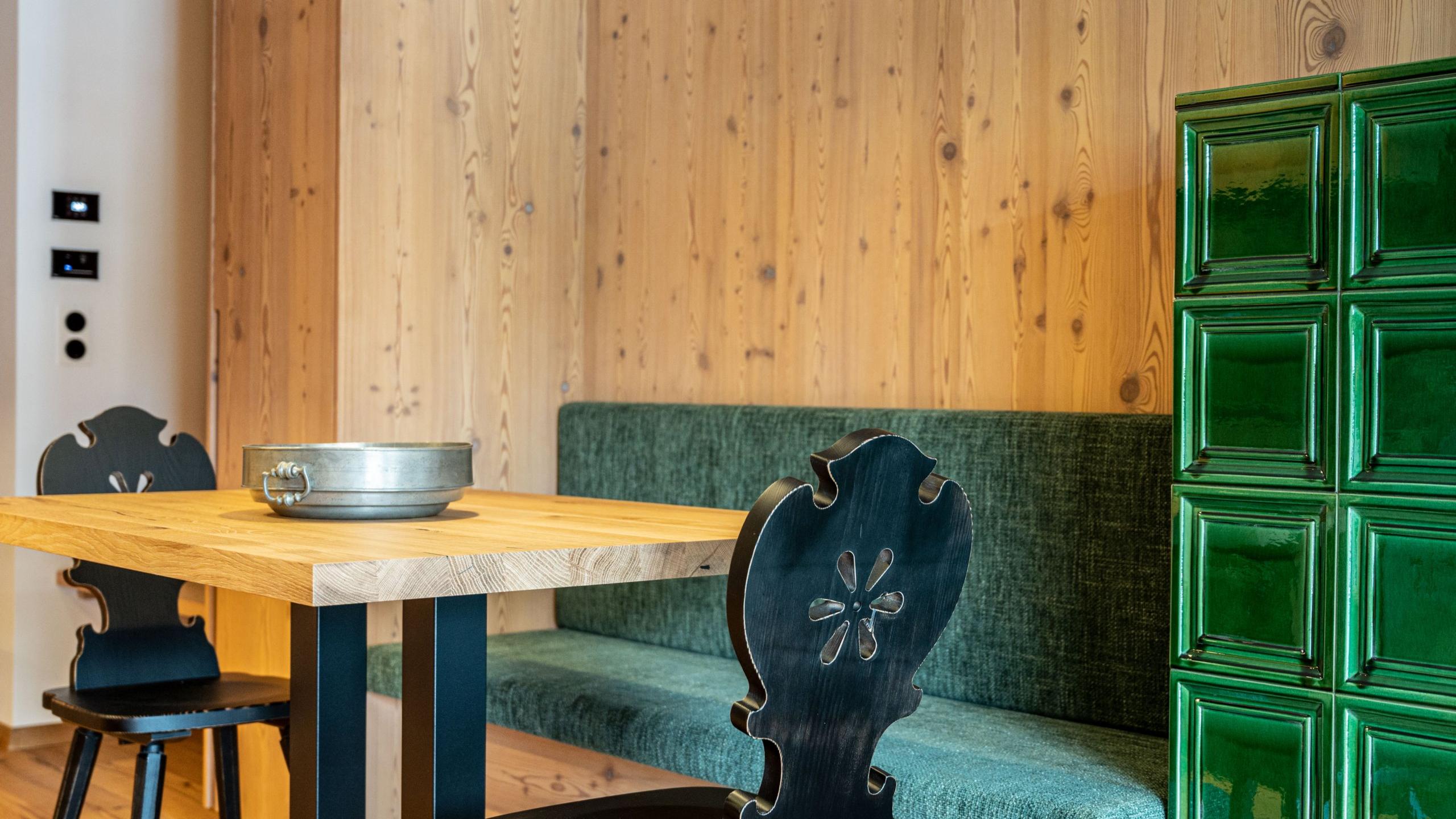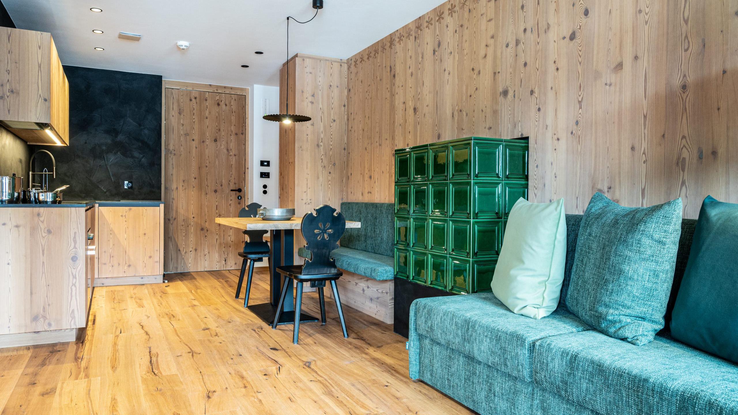 - Ampia zona giorno con cucina, tavolo da pranzo, stufa in maiolica, TV SAT e divano letto